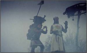 Sacré Graal est un film réalisé par la célèbre troupe de comédien/acteur britanniques LES MONTY PYTHON, très connus pour leur humour grotesque ainsi que leur amour des sketchs. Ils ont réalisé trois longs métrages dont Sacré Graal sorti en 1975. Film parodique constitué de sketchs ironiques et dénonciateurs, beaucoup se sont inspirés des codes humoristiques des Monty python comme le trio des Nuls, en France, avec « la cité de la peur ». Sacré Graal parodie donc l’histoire du roi Arthur et de ses chevaliers de la table ronde en quête du saint graal. L’objet sert en réalité de mac-guffin à ses auteurs car le vrai but est de faire passer, avec un humour subtilement ironique, leurs points de vue sur la société britannique de leur époque.